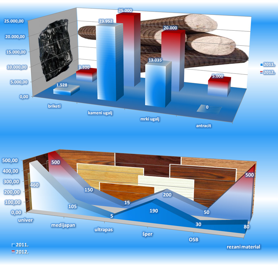 - JKP Beogradske elektrane (potrebe 1.500 tona briketa); - JP Toplana Bor (21.000 tona mrkog uglja) i drugim toplanama; - RTB BOR – TIR Bor (potrebe su 40.000 t. kamenog i 20.000 t. mrkog uglja); - SISECAM SODA Lukavac (potrebe su 45.000 t. antracita); - stovarišta ogreva. •U pogledu načina prodaje, osim klasične velikoprodaje i maloprodaje i učešća na tenderima, Direkcija za drvo će nastaviti i saradnju sa velikim trgovinskim lancima (Merkator, Metro i drugi) distribuirajući preko njih za široku potrošnju mala pakovanja drvenog briketa, ugljenog briketa i drvenog ćumura. Takođe planiramo prodaju briketa u izvozu (½ fabričke proizvodnje), kao i eventualni izvoz trupaca u saradnji sa Srbijašumama.